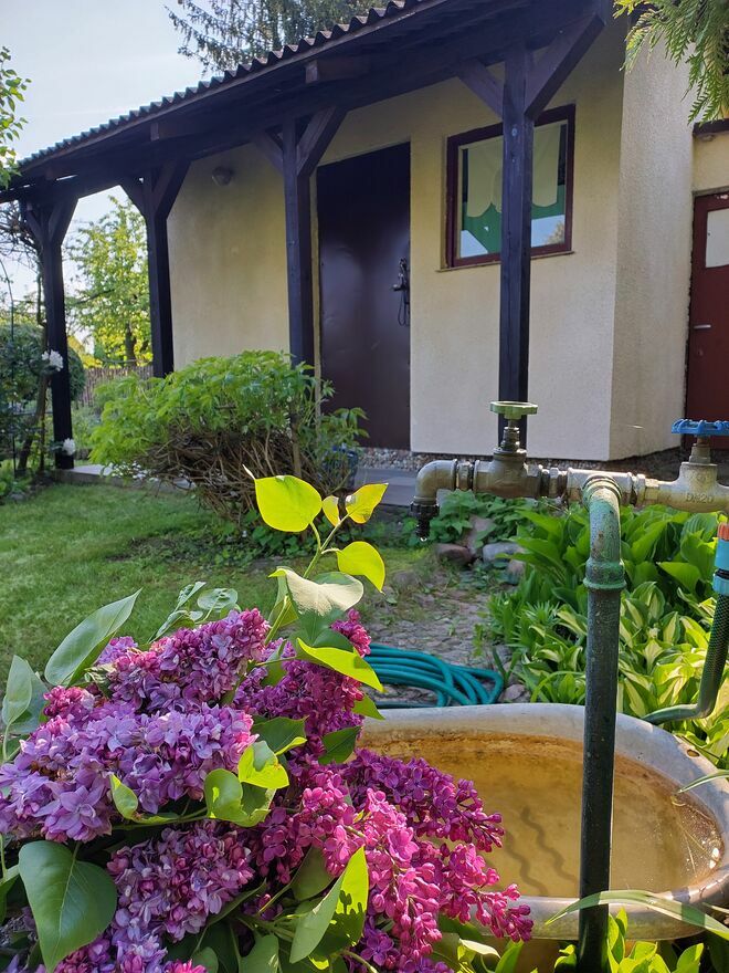 liczne nasadzenia (drzewa, krzewy, kwiaty)